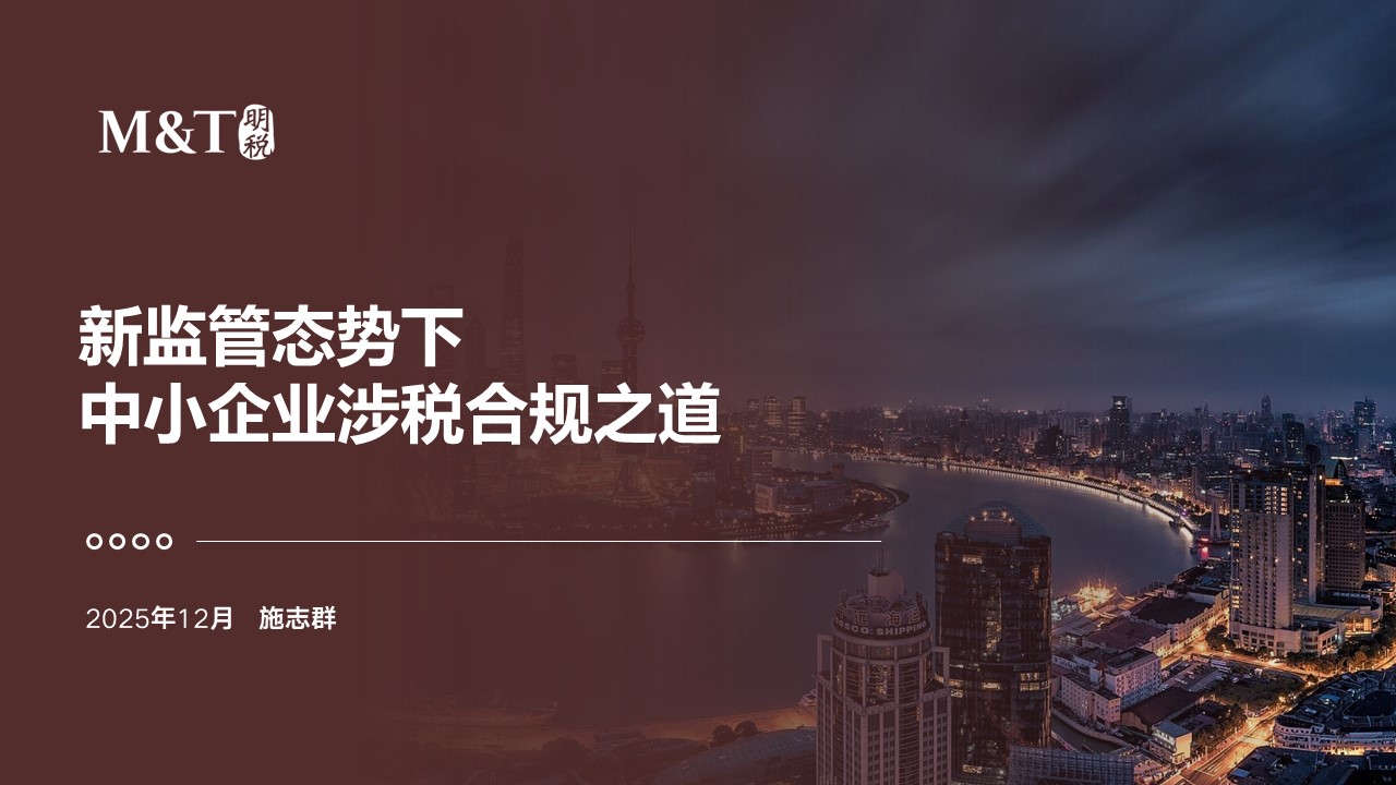 12月4日,北京明税律师事务所合伙人施志群律师受邀为某银行西安分行客户进行专题分享,聚焦“中小企业涉税合规管理与税务稽查应对”。施律师结合最新税收数据与典型案例,深入剖析了在税收监管向“以数治税”转型的背景下,中小企业如何系统构建合规体系、有效应对稽查。分享主要包含以下几部分。