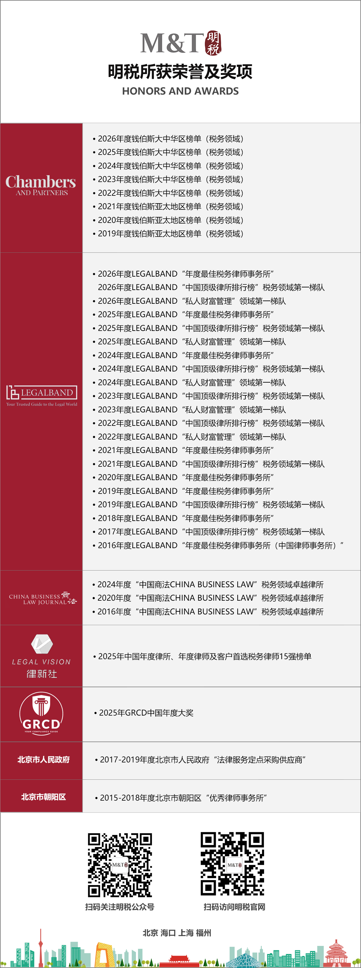 2026年4月21日,知名法律评级机构LEGALBAND公布2026年度LEGALBAND“中国顶级律所排行榜”、“中国顶级律师排行榜”,北京明税律师事务所荣登税务、私人财富管理领域第一梯队。